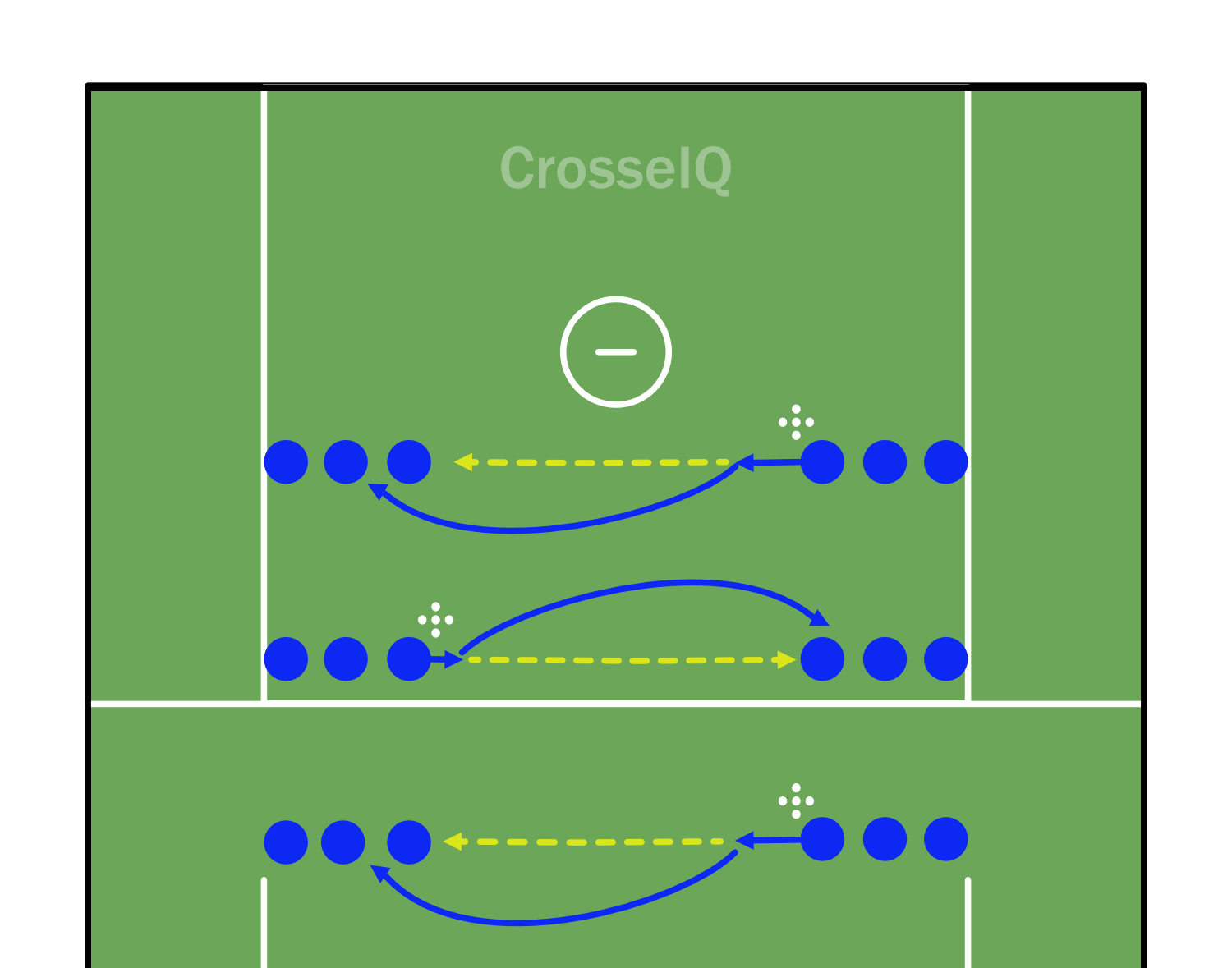 - After making the pass, the Player will follow their pass and join the opposite line.